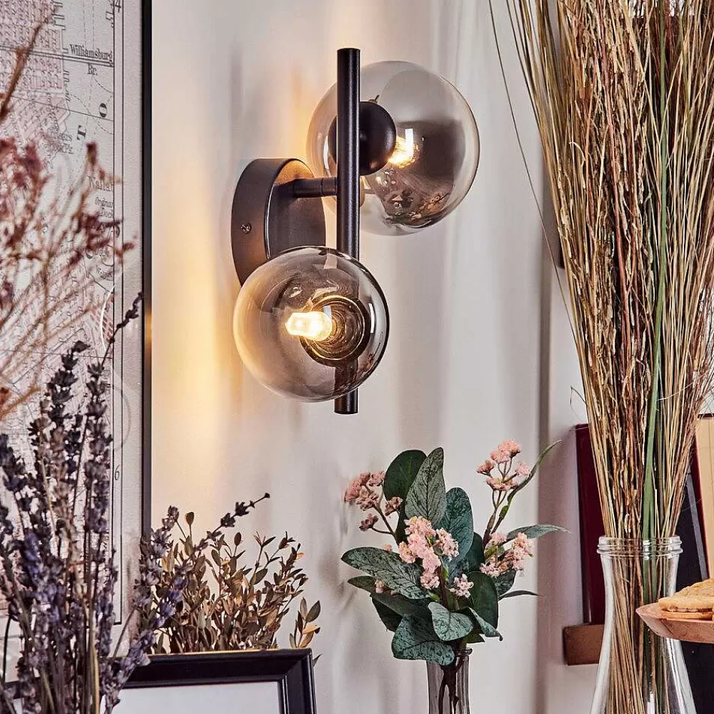 hofstein Applique Murale – Verre 10 Cm, 12 Cm Chehalis Noir, 2 Lumieres