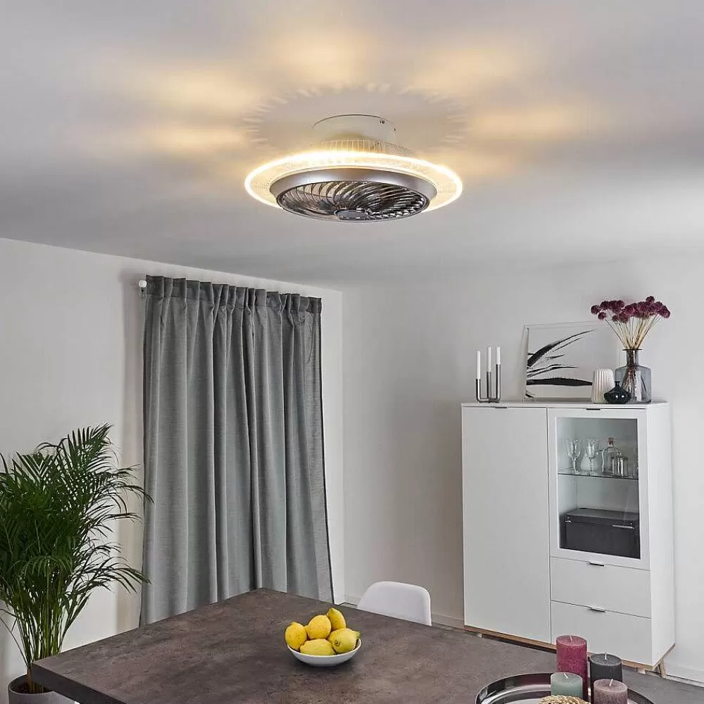 hofstein Ventilateur De Plafond Tamworth Led Argente, Transparent, 1 Lumiere, Telecommandes