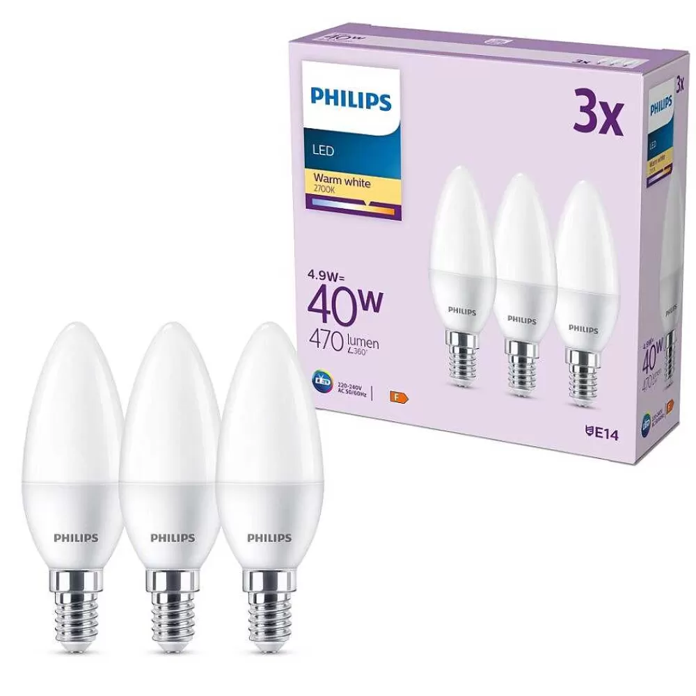 Luminaires Philips Philips Classic Lot De 3 Led E14 4,9 Watt 2700 Kelvin 470 Lumen