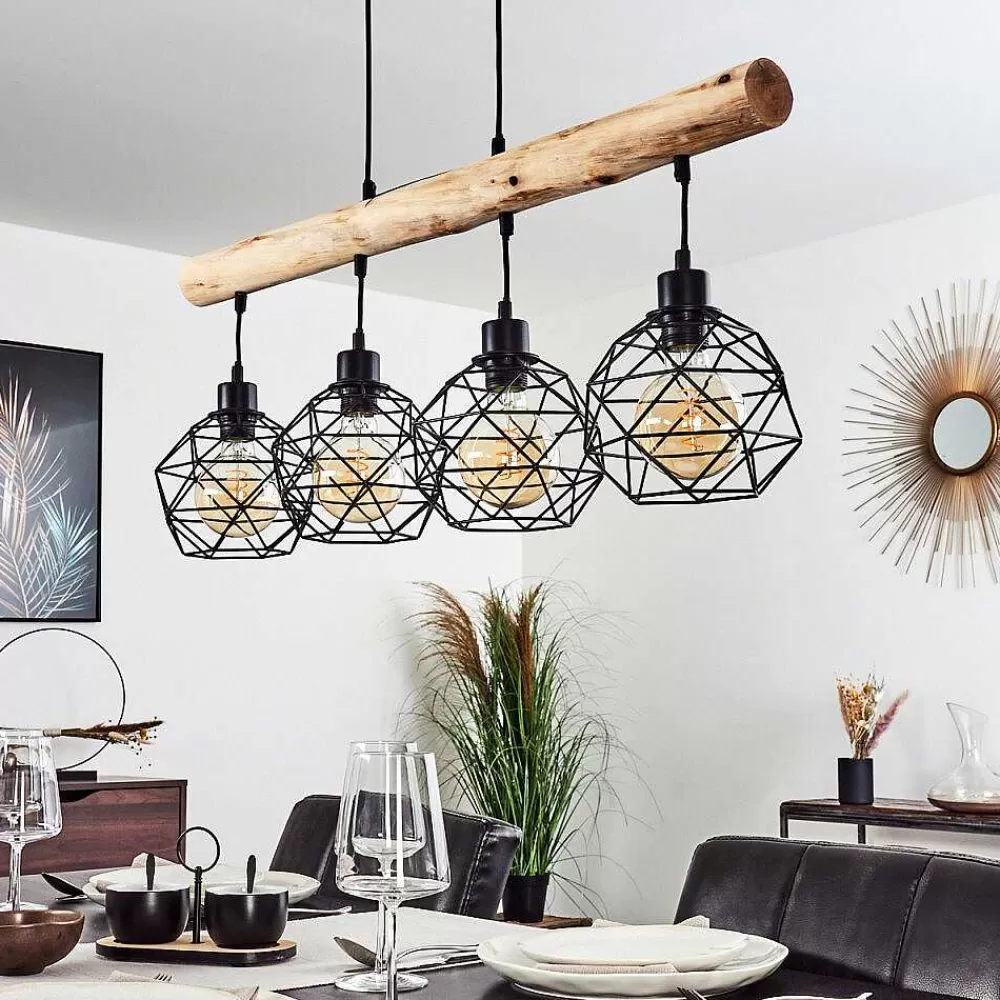 hofstein Suspension Bacabal Bois Clair, Noir, 4 Lumieres