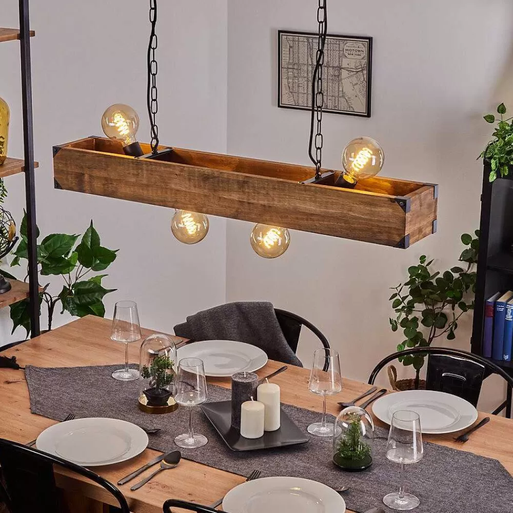 hofstein Plafonnier Salmi Led Brun, Couleur Bois, Noir, 1 Lumiere, Telecommandes