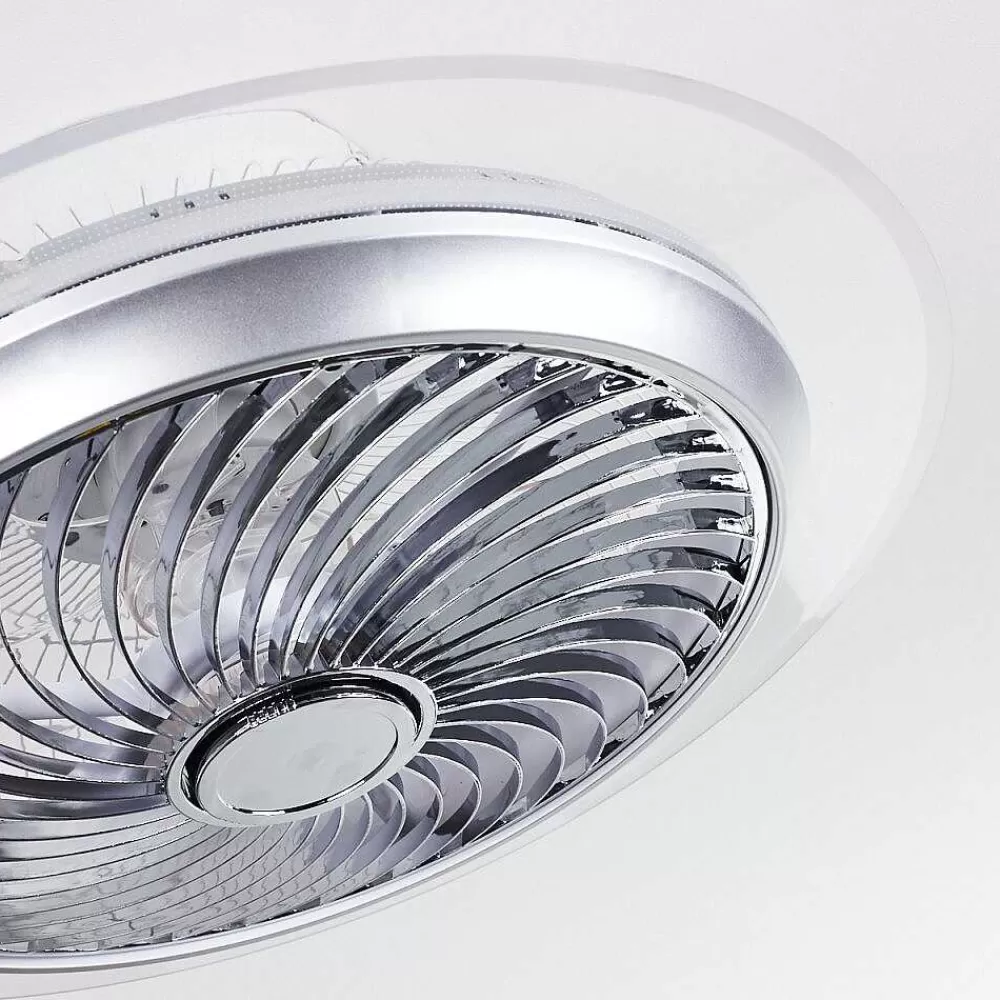 hofstein Ventilateur De Plafond Tamworth Led Argente, Transparent, 1 Lumiere, Telecommandes