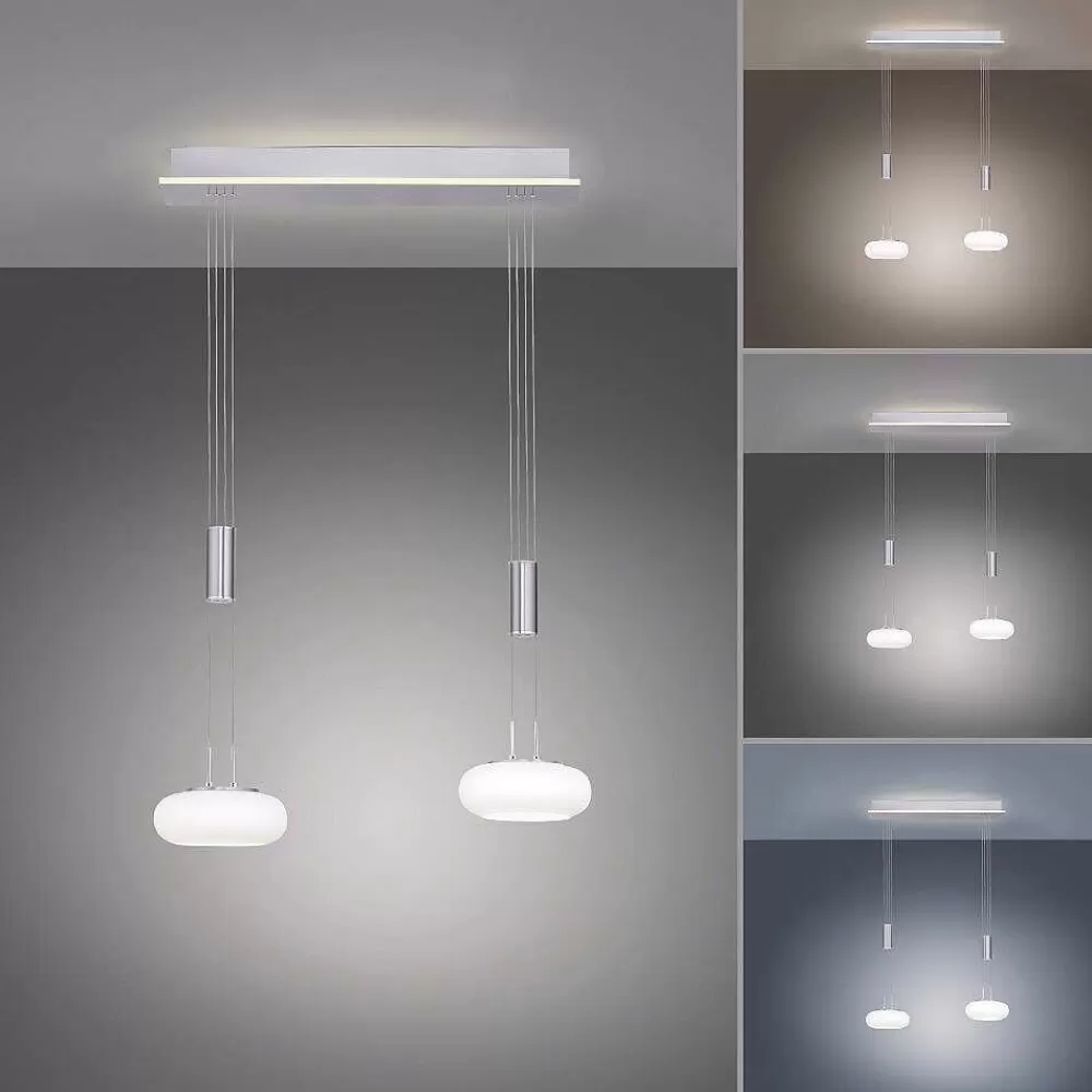 Paul Neuhaus Q-Serie Suspension Paul-Neuhaus Q-Etienne Led Acier Brosse, 2 Lumieres, Telecommandes